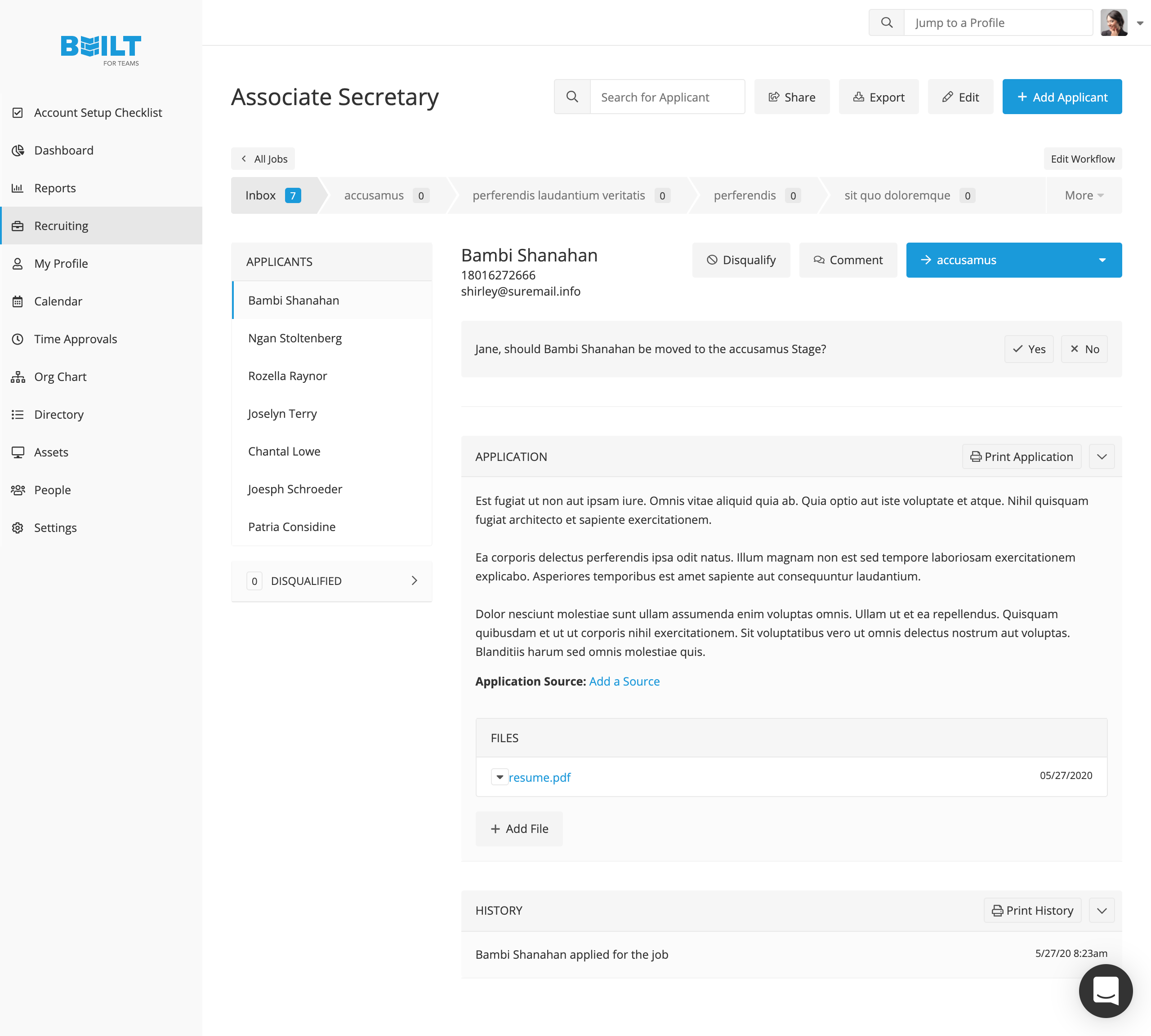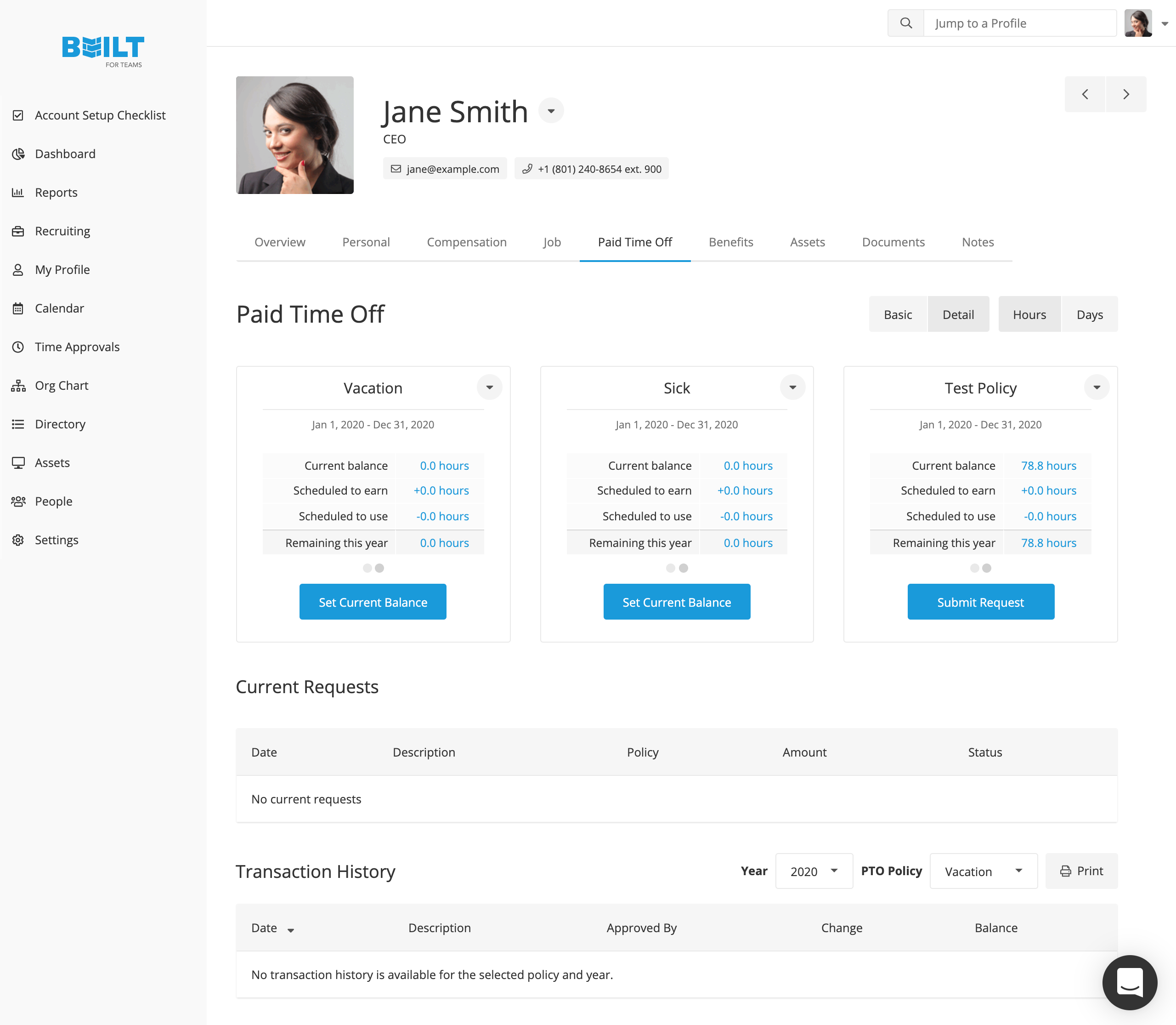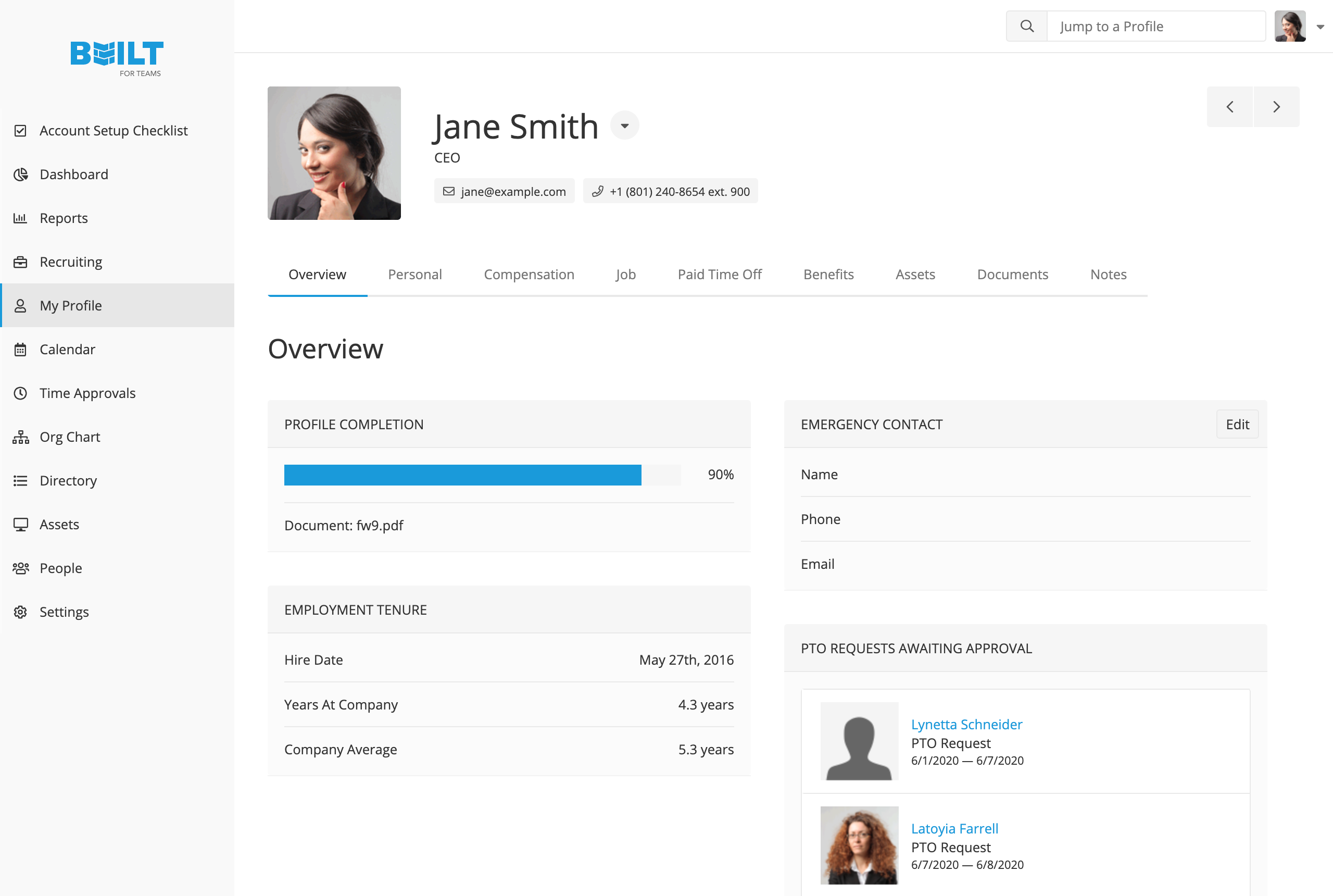 A product by Objective, Built for Teams provides a solution for viewing your entire organization with its Org Chart, tracking of PTO, and managing job applications.