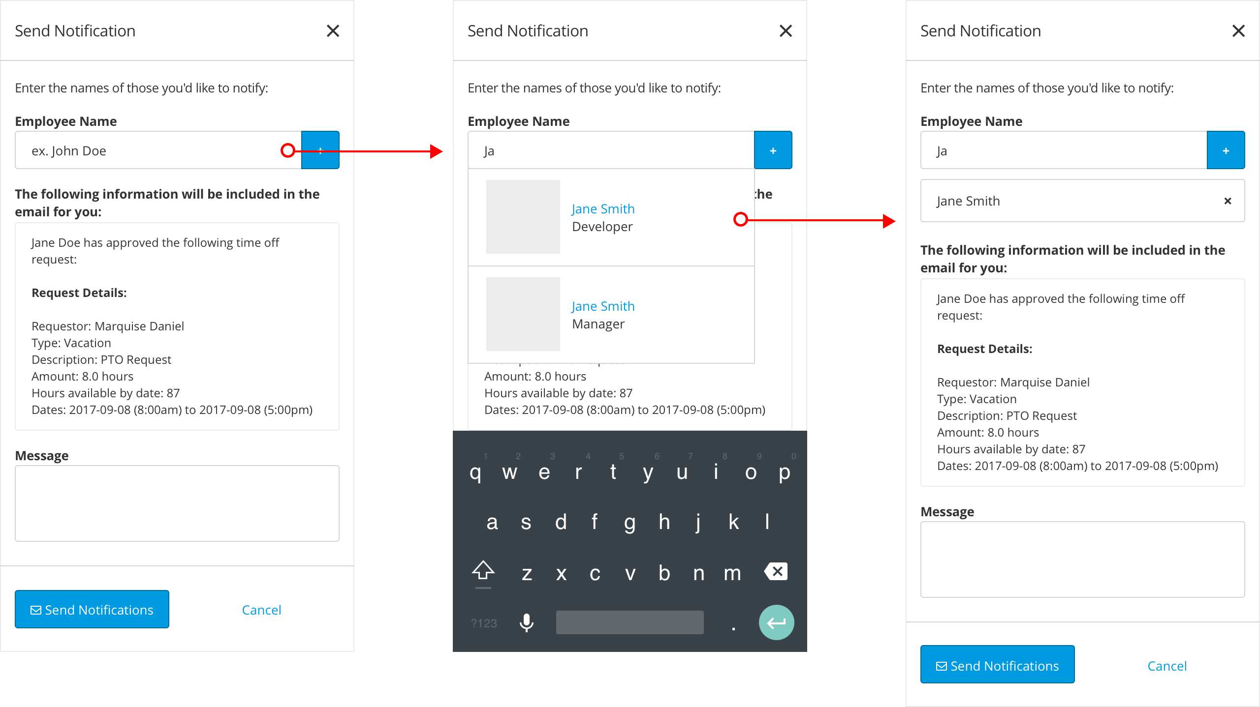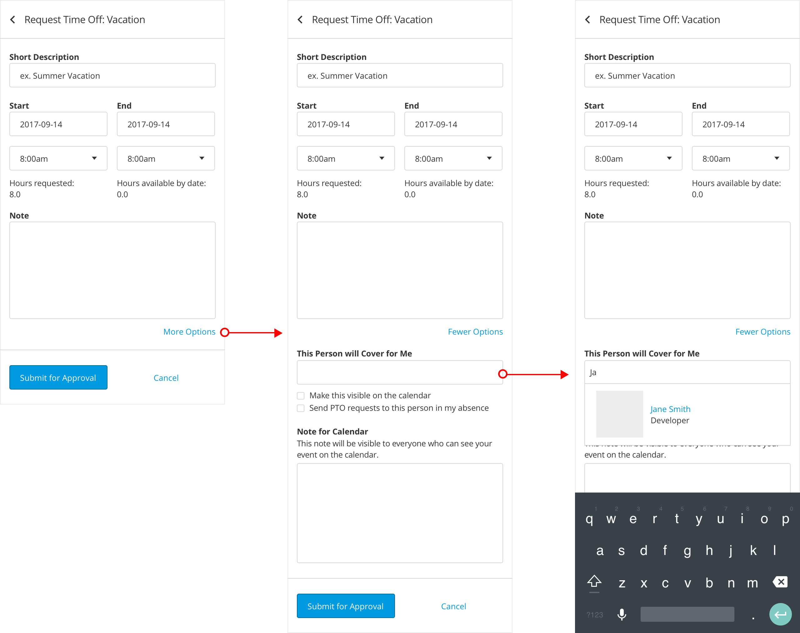 I designed the native application dedicated to making PTO requests. I designed a high fidelity prototype for developers so they would have a clear understanding of how things should behave.
